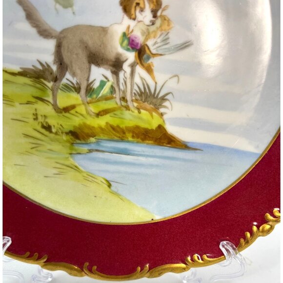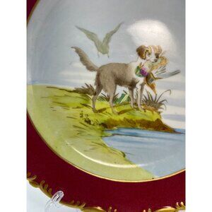 RARE Fischer & Mieg Hand Colored Hunting Dogs & Game Birds Plate