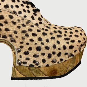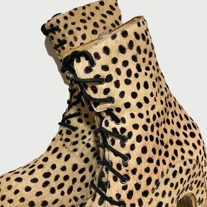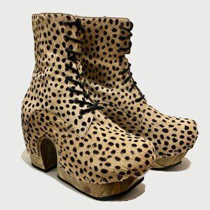 HARD TO FIND John Fluevog Fall/Winter 2012 ARC RAINBOW BOOTS, Cheetah Print, Size 10 (best for 9.5). I absolutely love these and it hurts me to sell them, but my ankles do not like these anymore. MY LOSS IS YOUR GAIN!!! They're in great condition, very gently used. Size 10 but best for a 9.5.