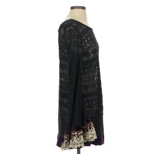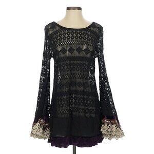 RARE Gypsy Junkies x Free People Black Lace Tie Dyed Silk Velvet Sequin Bell Sleeve Tunic Mini Dress