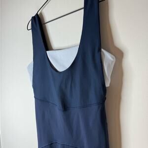 Free People Movement She’s a Maniac jumpsuit. Blue Ribbed bra top (no pads). Wide supportive straps. Size XL.