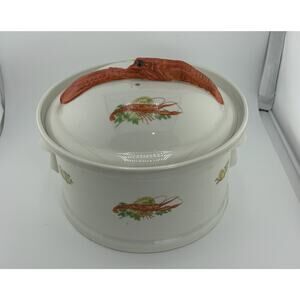 RARE French Hand Painted Seafood Crock Dish Porcelaine de France Mid Century Seafood Handle