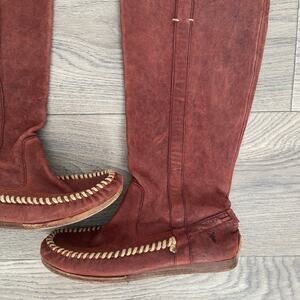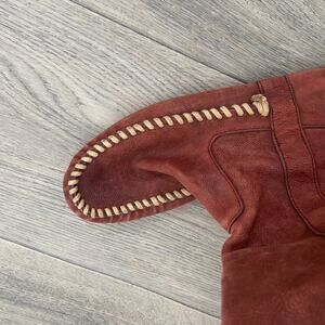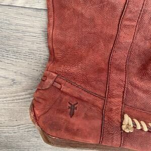RARE Frye Moccasin Boots Women's 5.5 Red/Brown Leather, Alex Pull On | tribal