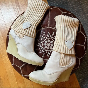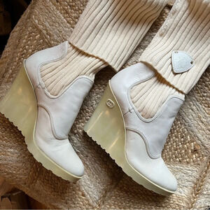 ✨RARE GUCCI Vintage White Leather Sock Wedge Platform Boots