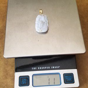 RARE GUMP'S 14K CARVED LAVENDER MOTTLED STONE CHINESE PENDANT NECKLACE ENHANCER