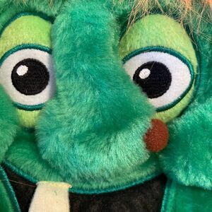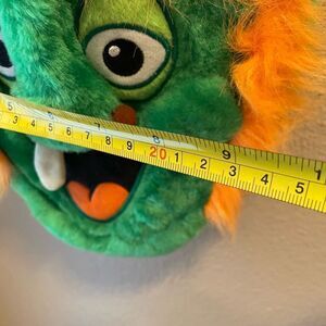Fluffy orange hair and embroidered details! Nylon backing. Bright vintage colors! Big brown wart on her nose she’s fabulous! Including a vintage plush spider!