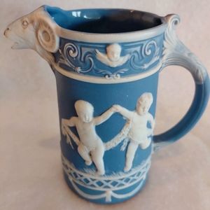 This is a Schafer & Vater Ram's Head Spout Cherub Pitcher.