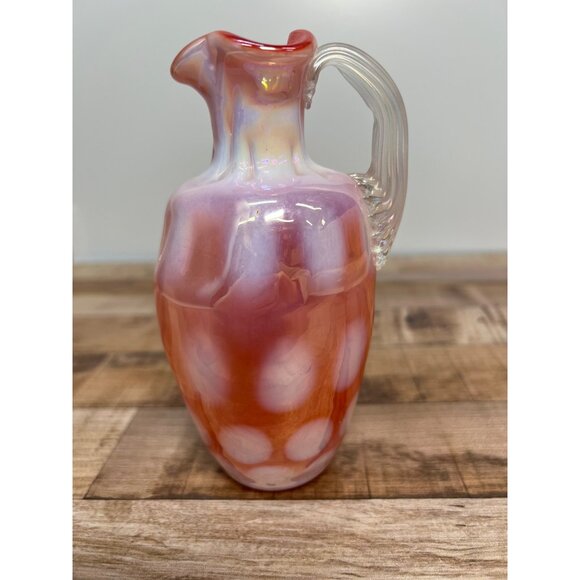 RARE Gibson 2003 Pink Opalescent Coin White Dots Pitcher 6 X 3 1/2"