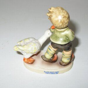 RARE Goebel Hummel Figurine "CAN'T CATCH ME" #2228 TMK8 3.5" T Boy w/Goose