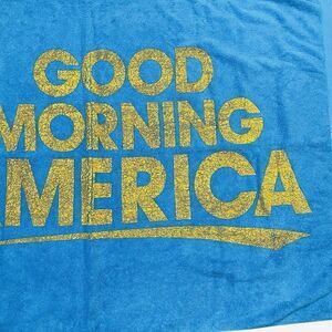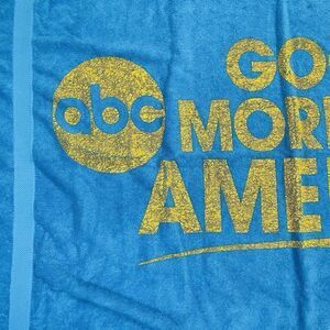 RARE Good Morning America Blue 100% Cotton Beach Towel 60 x 35 ABC Logo Terry Town 2016 TV Television Show Gift Collectible HTF Souvenir GMA Ad Advertising Body Large Soft NYC New York Times Square Studio Exclusive News Press Media Memories