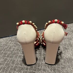 RARE This is the Gucci Tracy cut out Cabichon. Elevate your style with these striking Gucci heels, featuring a vibrant red and white color scheme. The playful polka dot pattern and elegant design make them perfect for both casual and semi-formal occasions. Crafted with attention to detail, these heels offer a chic and sophisticated look. Size 36 They have professional sole protectors on them so they never wear down.