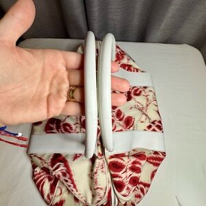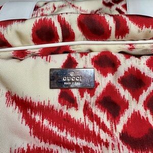This is an incredibly rare Gucci x Tom Ford red and beige abstract floral print weekender bag from the 2000 spring/summer collection.