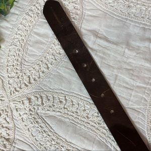 RARE Guess Jeans Vintage Brass Buckle Spell Out Logo Brown Leather Belt