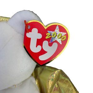 RARE HALO II Angel Bear TY Beanie White Gold Wings Brown Nose PE Pellets 2000