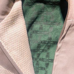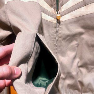 Jacket features the special liner with the green like the Bonsai and using dunk lows to create the pattern. The zipper says "Nike Air." The hemp material is used on outlay of jacket to create the stripe pattern.