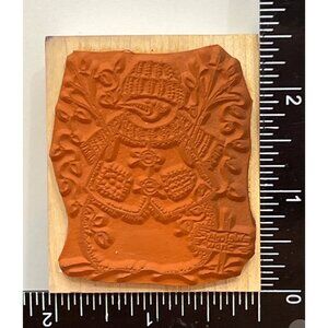 RARE HERO ARTS E1254 SNOWMAN WITH LIGHTS WOOD MOUNTED RUBBER STAMP WELCOME SNOW