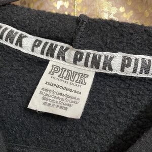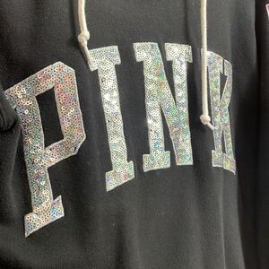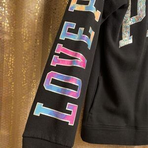 RARE HTF PINK VS watercolor holographic sequin bling black sweatshirt, XS