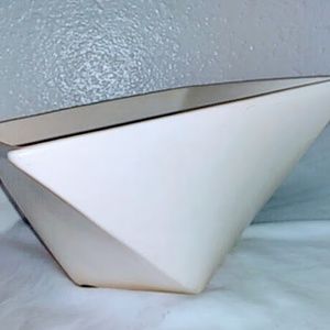 RARE Haeger 549 Matte White Planter Bowl-Mid Century Modern 60s design. Beautiful fruit bowl or planter in perfect condition shows the slight imperfection of a handcrafted item. It is hand built with a twist design. It appears never to have been used as a planter. No chips cracks or crazing. Measures 7" across the top and stands 4 1/2" tall.  I have only seen two other examples of this rare bowl.
