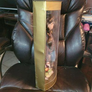 16" tall brunette w/braids. She holds a basket of fruit. Very pretty. This is a very rare doll from the Collectibles Memories Collection. I haven't been able to find another one for sale, new or used.