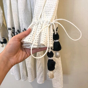 NEW Hemant & Nandita Embroidered Eyelet Tassled V Neck Cotton Mini Dress XS NWT
