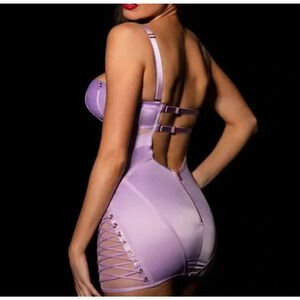 RARE🔥 Honey Birdette JERRY💜 Purple Lilac Bustier Cheeky Dress 34DD