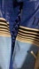 Blue faux leather (100% Polyurethane). Lining (100% Polyester). Jacket. Long sleeves. Crewneck. Front zipper closure. 26" from shoulder to hemline.