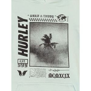 RARE Hurley Worldwide Hoodie Surf & Enjoy Est. 999 Sweatshirt Sea Green Palm.