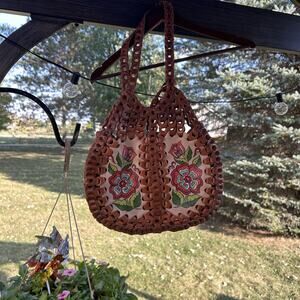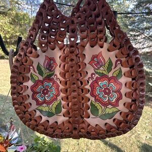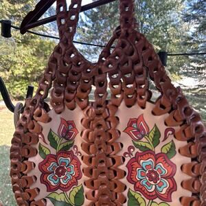 RARE ISABELLA FIORE MULTI-COLOR PAINTED FLOWERS LEAVES LEATHER PURSE HANDBAG