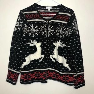 RARE J. JILL Fair Isle Christmas Wool Reindeer Sweater Zip Cardigan SP Holiday