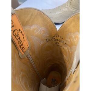 Step out in style with these El General Cowboy Boots. Made with exotic leather, these boots are sure to make a statement. The color and embroidered stitching add a touch of Western style, perfect for any occasion.