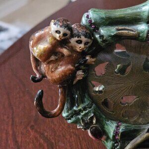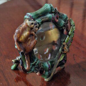 RARE JAY STRONGWATER MONKEY PAIR FROG BAMBOO FLORAL JUNGLE CRYSTAL ENAMEL FRAME