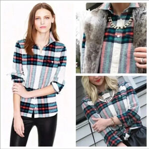 J Crew Rare Rock Salt Plaid Flannel Button Down Top. Gently used and shows minor signs of gentle washing etc.