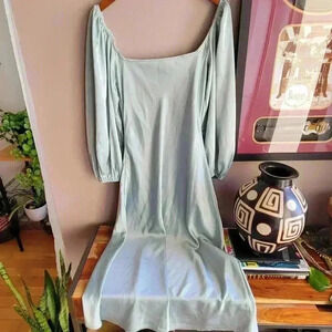 RARE JJ' House Satin Reflective Maxi Dress Puff Long Sleeve Retro Style Medium