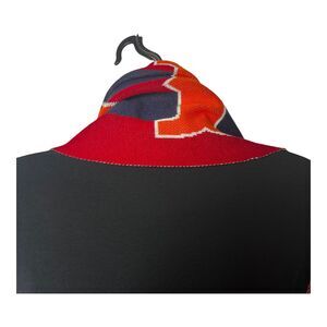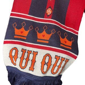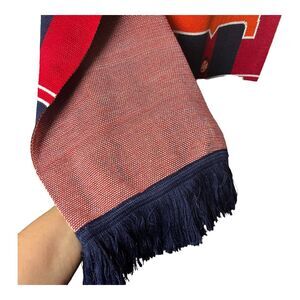 RARE JONATHAN ADLER FRINGED SWEATER SCARF LONG BLUE ORANGE “OUI OUI” 10” X 74”