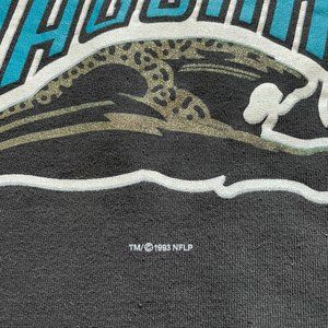 This 1993 Jacksonville Jaguars crewneck is from the original line of promotional products designed for the team before they received a cease and desist for the banned logo.