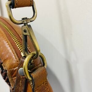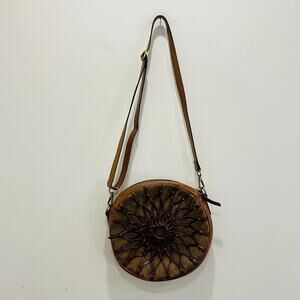 RARE Jenny Bird Netted Canteen Suede Leather Circle Round Crossbody Bag Boho