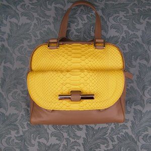 STORE DISPLAY (almost new) Jimmy Choo Justine Taupe Leather Bag with Yellow Python