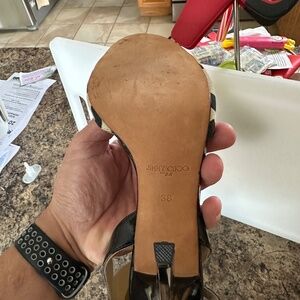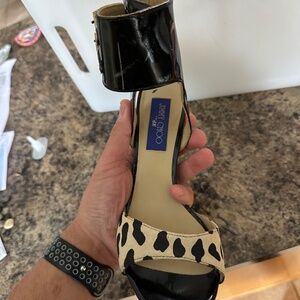 RARE Jimmy Choo x H&M sandals heels Size 38 - Black ankle cuff, dalmatian print