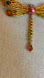 This dragonfly has a 4" wing span with two layers that look like a stained glass window. The wings are separated by a shiny pink faux pearl for the head with carefully placed light blue gems for eyes.