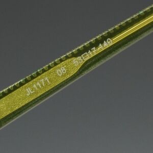 Elegant and rare vintage Judith Leiber eyeglasses in a sculpted cat-eye silhouette. Model JL1171 in color code 08 features a shimmering green translucent frame with yellow inner trim and etched floral details on the temples. High-quality craftsmanship and classic Leiber luxury.