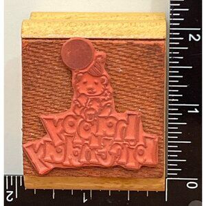 RARE LEIGH'S WISHING WELL HAPPY BIRTHDAY BEAR WOOD MOUNTED RUBBER STAMP HAWAII