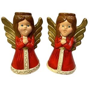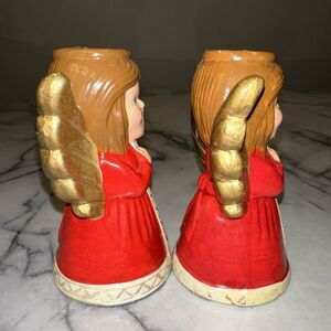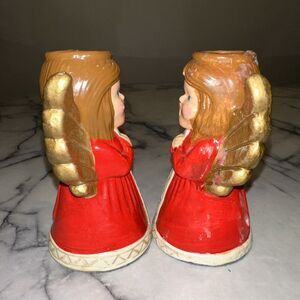 RARE LENOX Japan Holiday Angel Caroler Taper Candle Holder Set 5" Kitsch Whimsy