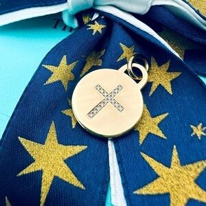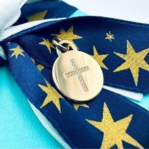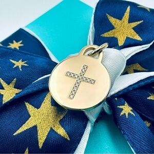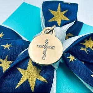 RARE LIMITED Tiffany & Co. Diamond Cross 18K Rose Gold Round Tag Charm Packaging