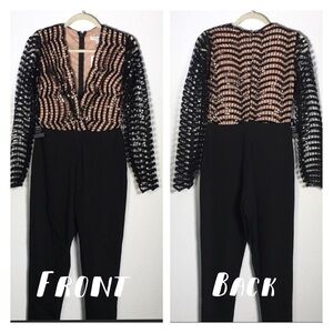 Black Sequin Lace Black Jumpsuit. By: Rare London . BNWT. Size 4/Small. Long Sleeves. Zipper in back. Perfect for any special ocassion! You will definitely get lots of compliments wearing this beauty😊Material: 100% Poly Excluding trims.