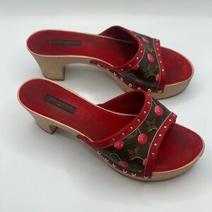 RARE LOUIS VUITTON Sz 7 1/2 AUTHENTIC Takashi Murakami Cerises Cherry Wood Clog