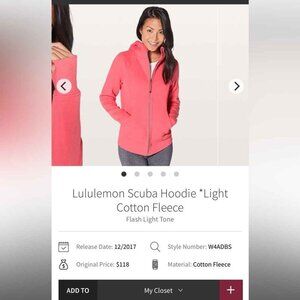 RARE LULULEMON SCUBA FULL ZIP PINK HOODIE SIZE 8