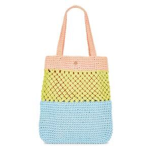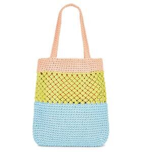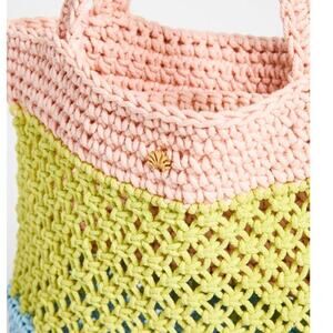 RARE Lele Sadoughi Pastel Colors Crochet Summer Vacation Tote Gold Logo