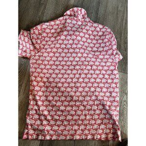 This rare Lilly Pulitzer Via Palm Beach polo in Island Coral Little Devil is a must-have for any beach-goer. Made from soft Pima cotton and featuring a fun fish pattern, this medium-sized polo is perfect for a day in the sun. The medium fabric wash gives it a relaxed, beachy vibe, while the bright coral color adds a pop of fun to any outfit. Whether you're lounging on the sand or hitting the waves, this polo is sure to be a standout piece in your beach wardrobe. O my one other listed and they have it listed for $200