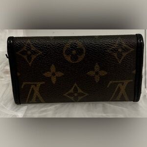 RARE Louis Vuitton Monogram Key Holder Wallet with Black Leather Trim
