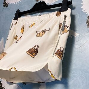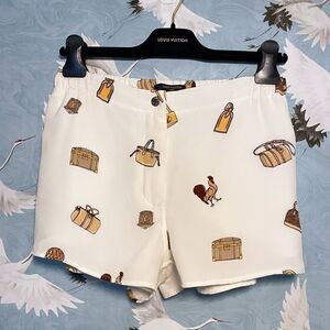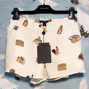 RARE 100% Authentic Louis Vuitton white shorts featuring an adorable print of LV bags, trunks & the Chinese Year of the Rooster. NWT never worn retail $1130. Silver hardware all stamped, zipper side pockets & flutter sides with a slight slit which are SO flattering. Zip-fly, button closure front, elastic band in back for stretch. Size FR 38 = US 6 = S/M. Redacted receipt in last ๐ท. Impeccably made, these are the cutest Louis Vuitton shorts and will last for a lifetime. Style 1A4ZF4 #slowfashion