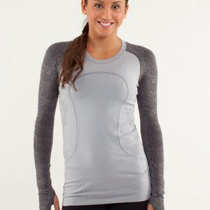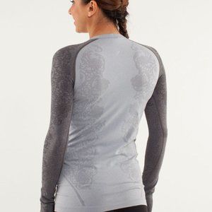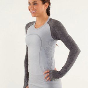 RARE Lululemon Run Swiftly Lace Print Long Sleeve 6 Gray NWOT